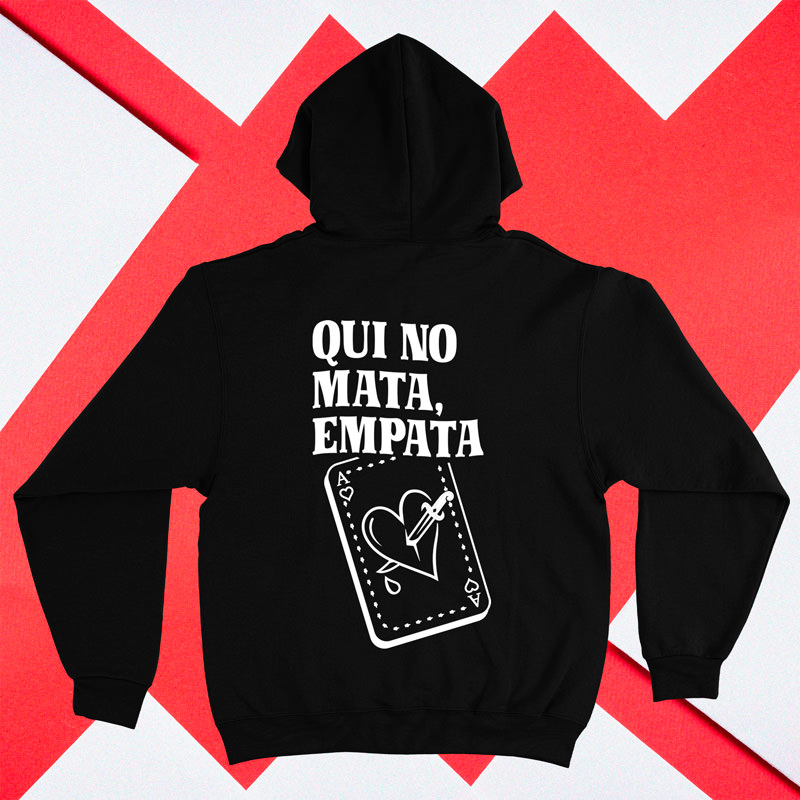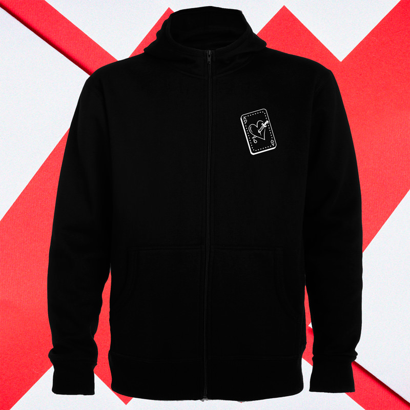Dessuadora amb caputxa, coll alt i cremallera completa. 50% cotó / 50% polièster, 280g/m².