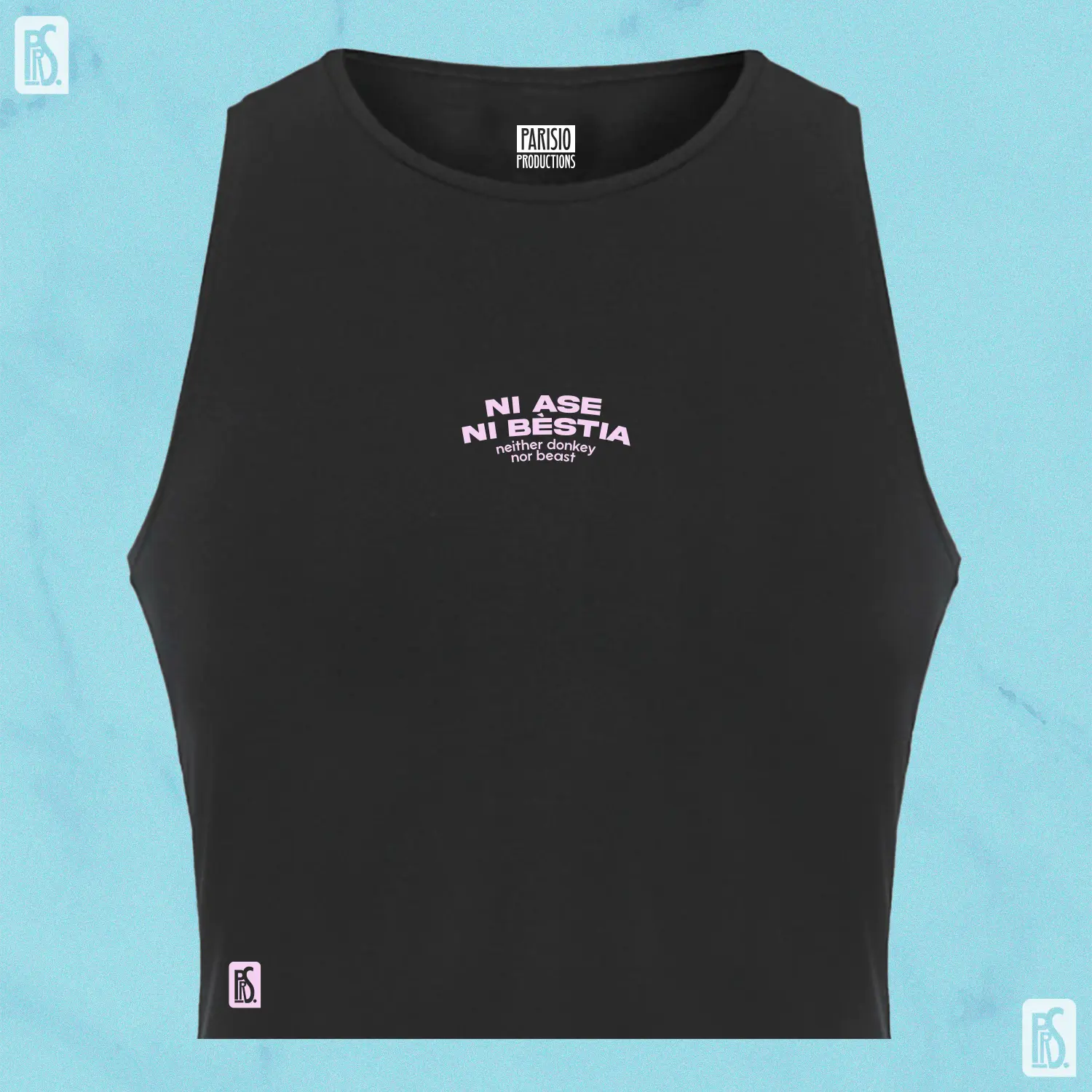 Top curt de dona, crop top. 95% cotó i 5% elastà. 220 g/m2.